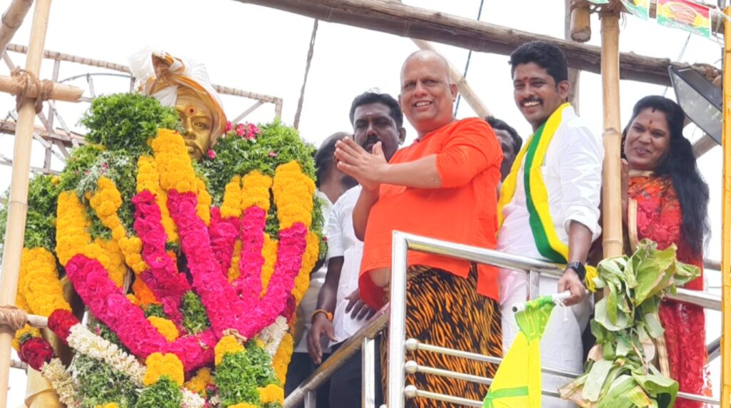 வ.உ.சி சிலைக்கு இந்து ராஷ்டிரா தலைவர் கருணாநிதி சுவாமிகள் மாலை அணிவித்து மரியாதை